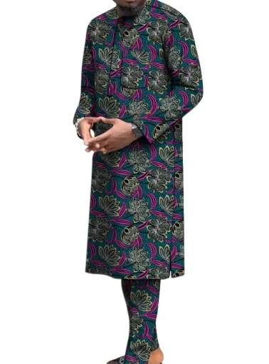 Customized African Wax Men’s set Print Long Shirt With Trouser Party Suit Wedding Wear Guaranteed Original outfits