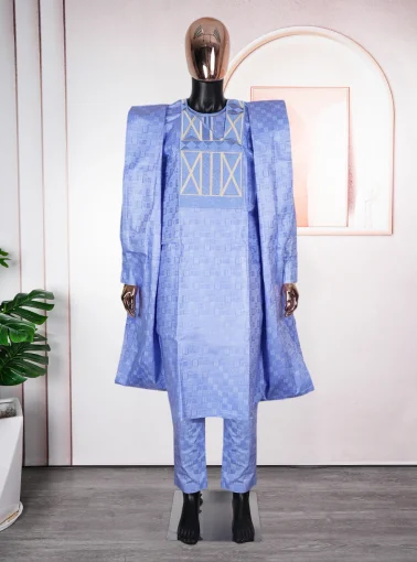 H&D South African Traditional Wear Formal Attire Bazin Riche Dashiki Outfits Wedding Blue Shirt Pants Robe Suit Agbada Ramadan