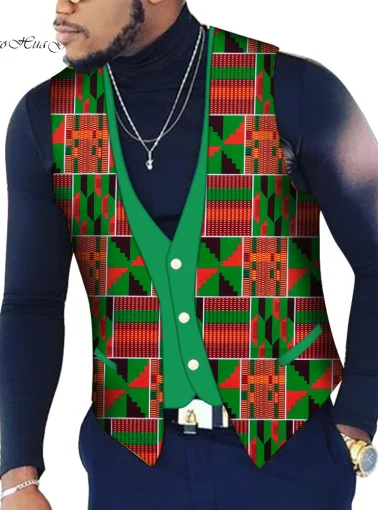 Custom Mens Top Clothing Bazin Riche Patchwork Print Top Vest 100% Cotton Dashiki Traditional African Clothing WYN107.
