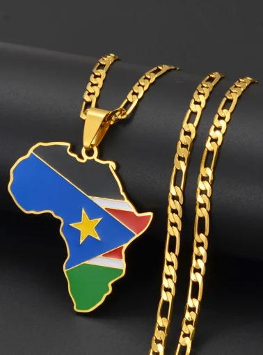 Anniyo 3.8CM Hip-hop South Sudan/Côte d’Ivoire/South Africa Map Flag and Africa Pendant Necklaces for Women Men Jewelry #321321