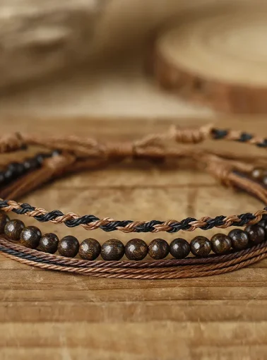 3PCS Wax Bracelet Set for Women Men Waterproof, Tiger Eye African Turquoise Beaded Friendship Bracelets Gifts for Best Friend