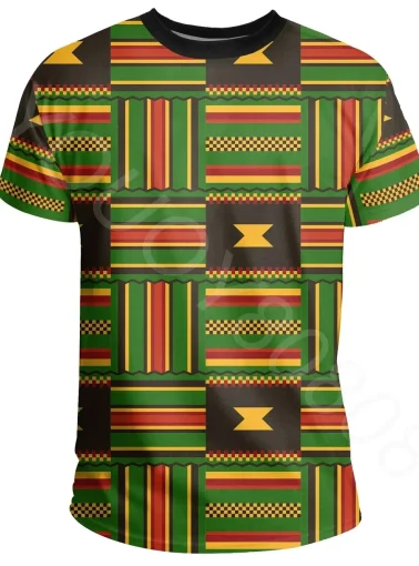 Men’s Summer Short Sleeve Casual Street 3D Printed Short Sleeve Africa T-Shirt – Ghana Graphic Kent T-Shirt