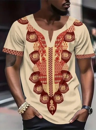 Summer Short Sleeve Men Tshirt Fashion Oversize Casual S-4Xl T-Shirts For Men African Dashiki Traditional Men’S Clothing