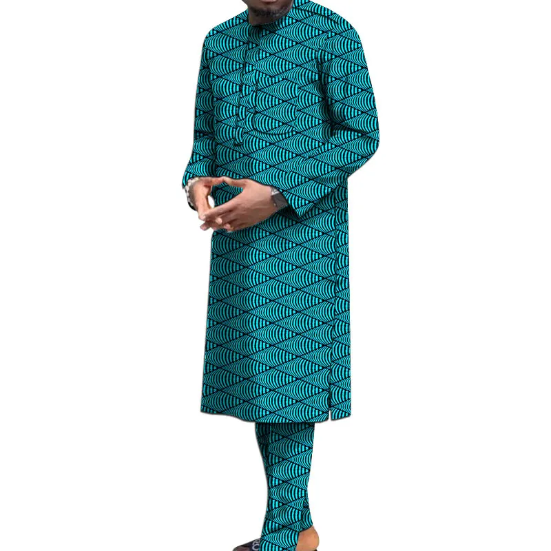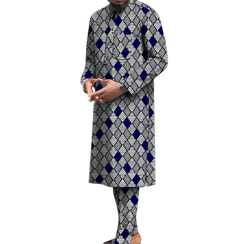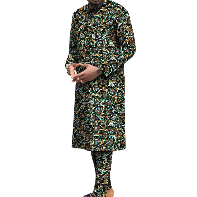 Buy Customized African Wax Men’s set Print Long Shirt With Trouser Party Suit Wedding Wear Guaranteed Original outfits