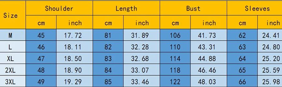 | Size | M, L, XL, XXL, XXXL |