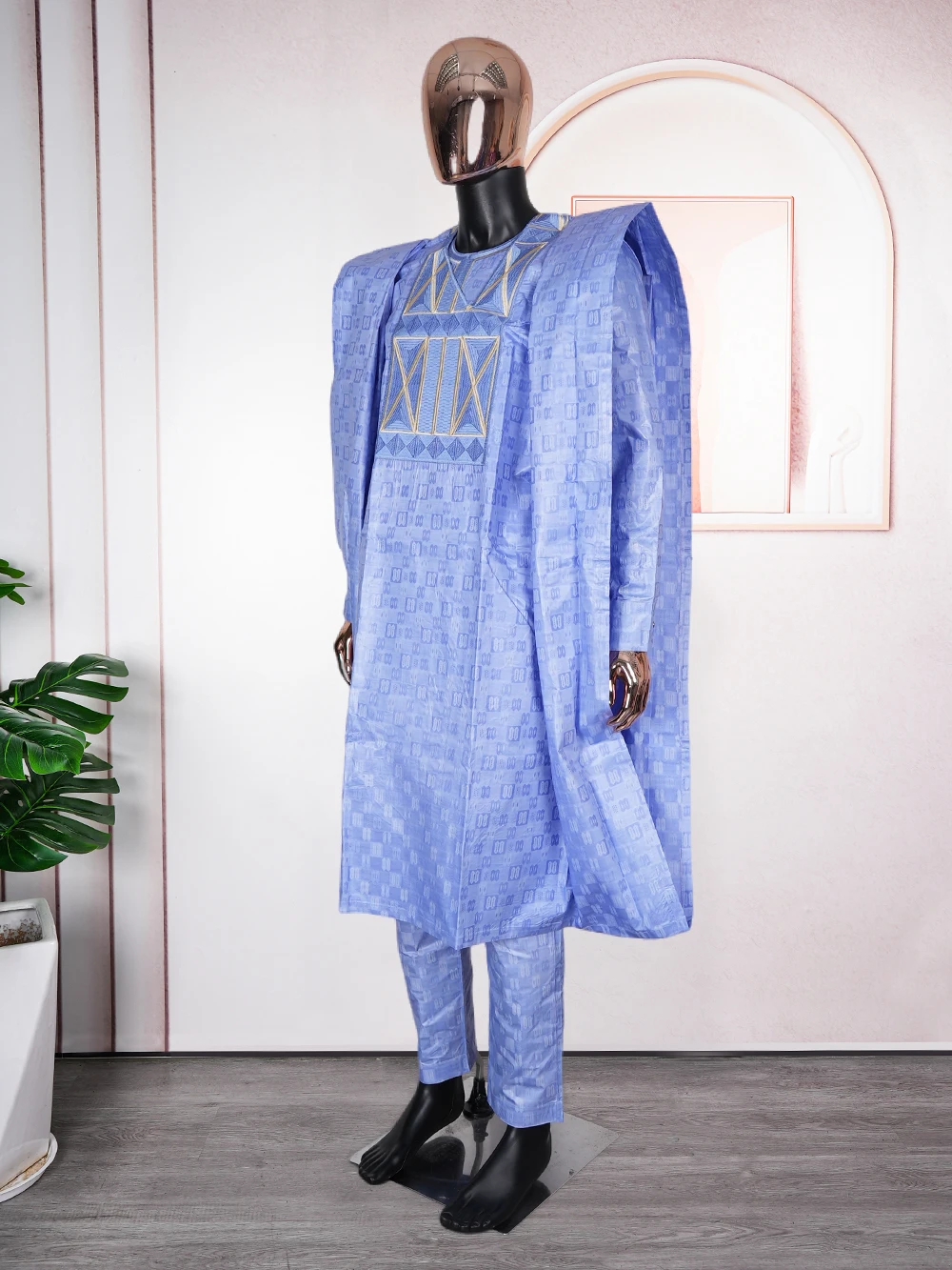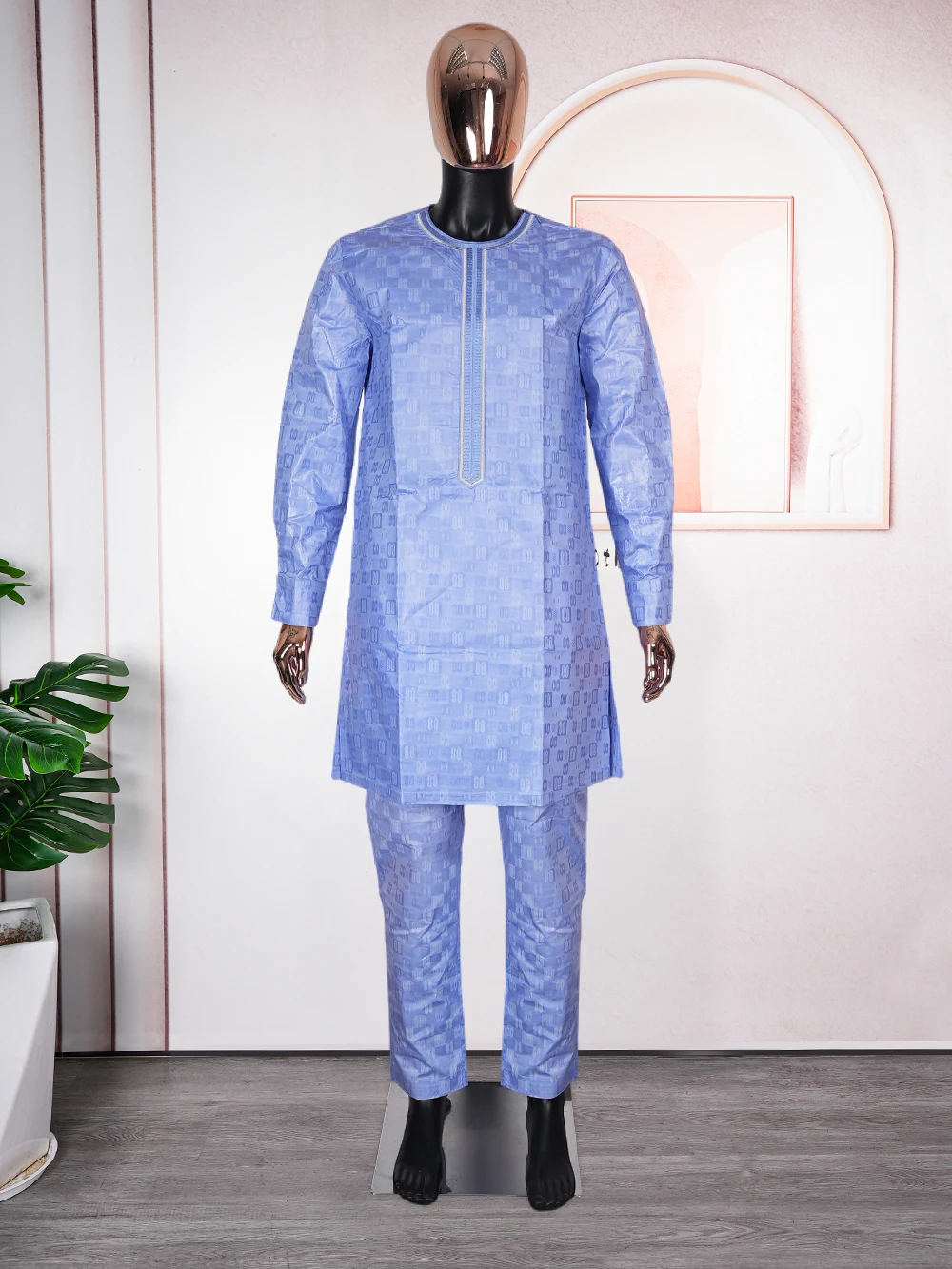 Be the first to review “H&D South African Traditional Wear Formal Attire Bazin Riche Dashiki Outfits Wedding Blue Shirt Pants Robe Suit Agbada Ramadan”