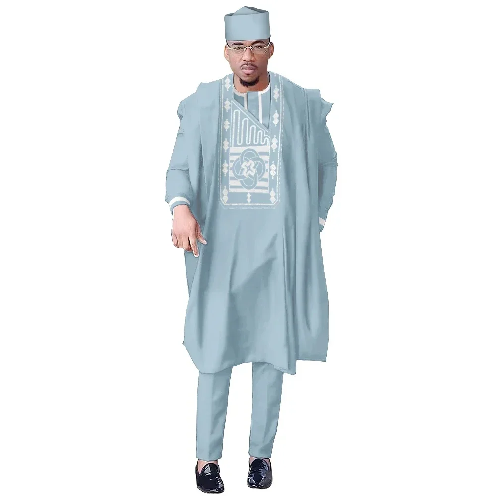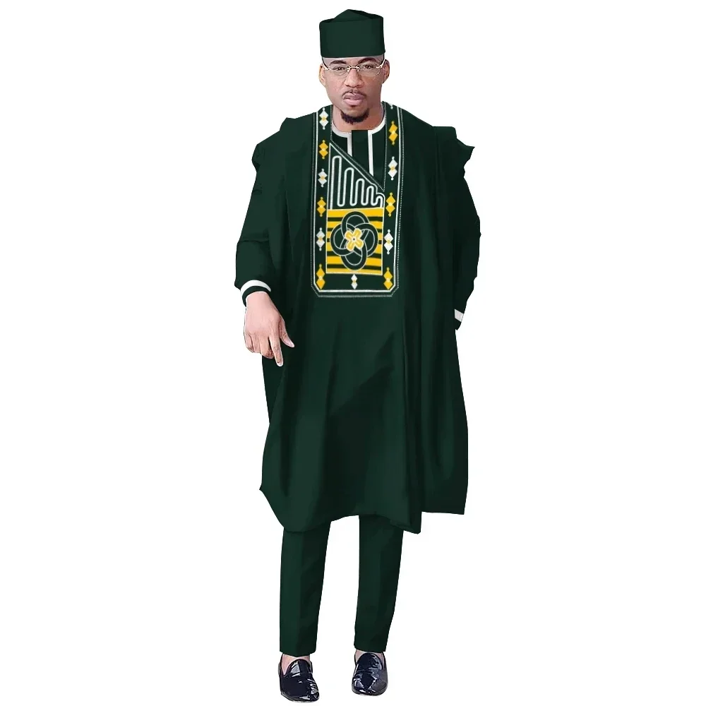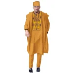 African Men Dashiki Clothes Shirt Pants Suit Ankara Embroidery Long Sleeve Tops Trouser with Hat 4 PCS WYN1884